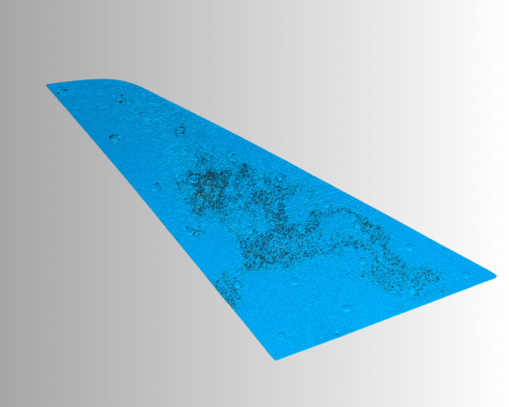 Per hochauflösendem 3D-Scan wurde die Scheibe exakt vermessen – inklusive Krümmung, Randverlauf und Montagepunkten. Der Fokus lag auf der sauberen Ableitung der Schnittlinie, die dem Kunden anschließend als DXF-Datei zur Verfügung gestellt wurde – ideal zur Weiterverarbeitung, z. B. für Laserschnitt oder CNC-Fräsen.
