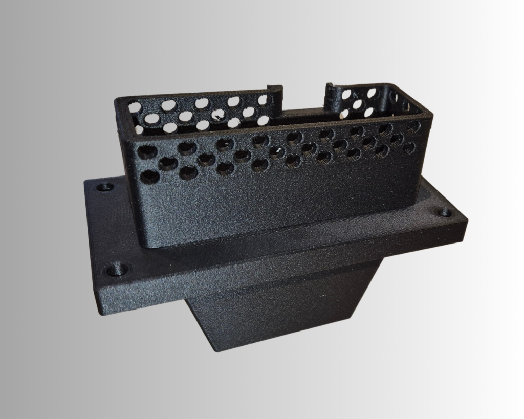 Nach einem 3D-Scan des ursprünglichen Bauteils und einer Optimierung der Geometrie entstand in kürzester Zeit ein maßgeschneiderter Prototyp im 3D-Druckverfahren – exakt angepasst an die technischen Anforderungen und die Einbausituation.