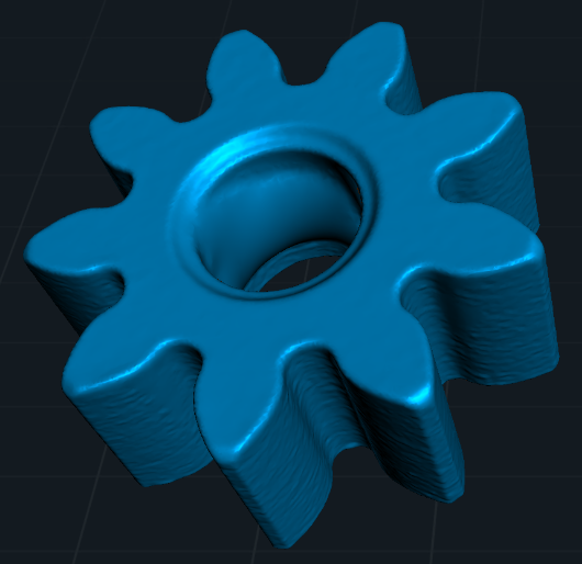 Mit einem hochpräzisen 3D-Scan konnte das beschädigte Zahnrad trotz starker Abnutzung digital rekonstruiert werden. Anschließend wurde ein Übergangsbauteil im 3D-Druckverfahren aus Kunststoff gefertigt – exakt angepasst an die bestehende Mechanik.